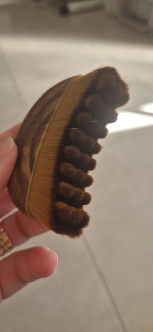 Gently exfoliate and smooth rough patches while promoting natural skin renewal. Regular dry brushing reduces flakiness and helps moisturizers absorb better. Use it before makeup application to ensure a smooth surface for foundation and concealer.